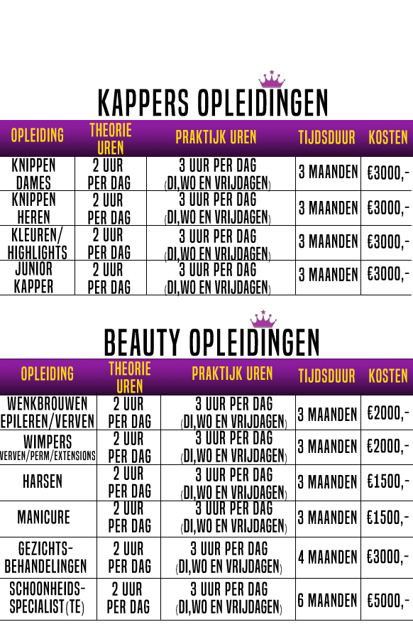 • Wij beschikken over een eigen salon. Hier kunnen leerlingen elke dag extra praktijk ervaring opdoen, en mee maken hoe het er in de praktijk aan toe gaat.